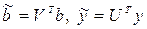 Если бы не ошибки округлений, то в данном примере третий диагональный элемент был бы точным нулем. Элементы под диагональю во всех столбцах указаны как точные нули, потому что преобразования так и строились, чтобы получить там нули. Последнее преобразование H3 в этом примере могло бы быть тождественным, однако тогда оно не было бы хаусхолдеровым отражением. Фактически использование H3 попутно изменяет знак элемента – 1.080 в матрице A4. Получилась искомая двухдиагональная матрица, и первый этап закончен. Прямое использование ортогональных преобразований не позволяет получить какие–либо новые нули. Для общего порядка n нужно n преобразований H и n–2 преобразований Q, чтобы достигнуть данного места. Число преобразований не зависит от строчной размерности m, но от m зависит работа, затрачиваемая на выполнение каждого преобразования. глава 3. Использование сингулярного разложения в методе наименьших квадратовПри использовании метода сингулярного разложения (SVD – Singular Value Decomposition) мы проводим разложение для матрицы плана. При этом основное уравнение y=Xb приобретает вид y=USVTb. Отсюда следует, что коэффициенты b можно получить решая уравнение UTy=SVTb. Т.е. если все sj, j=1,…,n, являющиеся диагональными элементами S отличны от нуля, то последнее уравнение разрешимо и