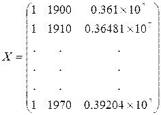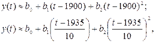 Следует определить значение Y при X =1980. Если аппроксимировать эти данные квадратичным многочленом