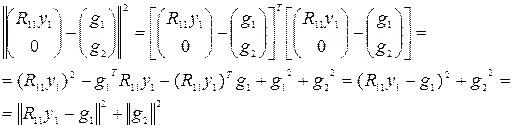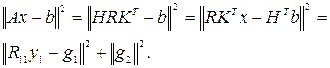 Единственным решением минимальной длины является вектор Доказательство. В выражении для квадрата нормы невязки заменим A на HRKT в соответствии с (2) и умножая на ортогональную матрицу HT (умножение на ортогональную матрицу не меняет евклидову норму вектора) получим