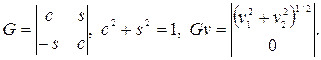что устанавливает равенство (3). Среди векторов Всякое разложение матрицы А типа (2) мы будем называть ортогональным разложением А. Заметим, что решение минимальной длины, множество всех решений и минимальное значение для задачи минимизации ||Ax-b|| определяются единственным образом. Они не зависят от конкретного ортогонального разложения. При проведении разложения необходимо приводить матрицы к диагональному виду. Для этого обычно используются два преобразования: Гивенса и Хаусхолдера, оставляющие нормы столбцов и строк матриц неизменными. 1.2. Ортогональное вращение ГивенсаЛемма. Пусть дан 2–вектор