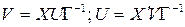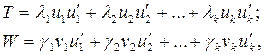 или функция от нее. Рассмотрим наиболее распространенный случай p=r. Матрица S может быть ковариационной матрицей p линейно независимых переменных. Матрица T также может представлять собой ковариационную матрицу p переменных, но так как ранг матрицы T k<p, то эти p переменных линейно зависят от k переменных. Таким образом, p исходных переменных, ковариационная матрица которых есть S, могут быть приближенно выражены через k переменных. Во второй задаче исходную матрицу X порядка Nxp можно выразить как X=VГU’, где V – матрица порядка Nxp c ортонормированными столбцами; Г – диагональная матрица порядка pxp, а U – квадратная ортогональная матрица порядка pxp. Матричную аппроксимацию меньшего ранга W можно представить в виде