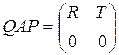 где R – верхняя треугольная к´к–матрица ранга к. Доказательство. Выберем матрицу перестановки Р таким образом, чтобы первые к столбцов матрицы AP, были линейно независимы. Согласно теореме 2, найдется ортогональная m´m–матрица Q такая, что QAP будет верхней треугольной. Поскольку первые к столбцов АР линейно независимы, это будет верно для первых к столбцов QAP. Все элементы матрицы QAP, стоящие на пересечении строк с номерами к+1,...,m и столбцов с номерами к+1,...,n, будут нулями. В противном случае rankQAP>k, что противоречит предположению rankA=k. Итак, QAP имеет форму, указанную правой частью (4). Теорема доказана. Подматрицу [R:T] из правой части (18) можно теперь преобразовать к компактной форме, требуемой от матрицы R из теоремы 2. Это преобразование описывает следующая лемма. Лемма 1. Пусть [R:T] – к´к–матрица, причем R имеет ранг к. Существует ортогональная n´n–матрица W такая, что