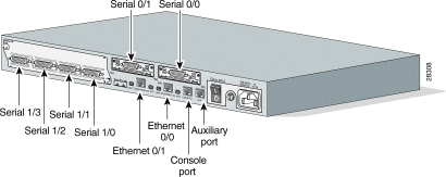 Малюнок 2.4.1. Інтерфейси маршрутизатора Cisco 1601 В модульних маршрутизаторах (малюнок 2.4.2., 2.4.3., 2.4.4.) номер інтерфейсу залежить від слоту, в якому встановлено інтерфейс ний модуль. В такому випадку номер складається з декількох чисел, які вказують, відповідно номер слоту, модуля та інтерфейсу.