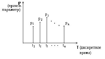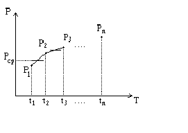 Пример: Построение математической модели стохастического типа. В процессе функционирования АСУ получены 100 замеров плавноменяющегося параметра Р. Замеры проводились в течении 10 секунд равномерно (т.е. каждую секунду). Наибольшее отклонение параметра Р от его некоторого среднего значения Рср , не превышают 10% т.е. задана погрешность. Погрешность измерения параметра – 5%. Какой вид будет иметь стохастическая модель в виде системы двух конечноразностных уравнений (динамики и измерения).
