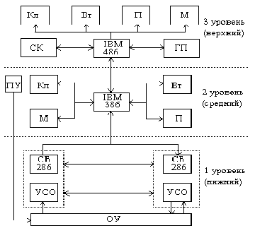 М–мышь; Вт–видетерминал; СК–сканер; Кл–клавиатура; ГП–графопостроитель; П–принтер; ПС–подсистемный сбор; ПУ–пультовое управление оператора. На 1-м уровне производится сбор, регистрация, преобразование информации, реализация управляющих воздействий. На 2-м уровне производится оперативная обработка информации с 1-го уровня. На 3-м уровне производится планирование экспериментов, обработка статистики за длительный период и ее анализ, расчет обработанных характеристик. 3. Взаимосвязь основных прикладных программ (программных модулей) под системой управления АСУ: