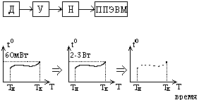 2. Комплекс технических средств (КТС). К нему относятся: а) датчики (Д)(ПП– первичный преобразователь). б) устройство связи с объектом – система интерфейса (УСО–Ш) в) вычислительная машина (комплекс ВК),(ППЭВМ типа IBM PC) г) кабели (КС) д) исполнительные механизмы (ИМ), нагревательные элементы (НЭ) е) пульт управления (ПУ) Типовой состав пульта управления: рабочее место оператора, приборы (измерительные), мнемосхема – отражения процесса (например лампочки), органы управления (тумблера, рычаги), средства связи. Структурная схема КТС: