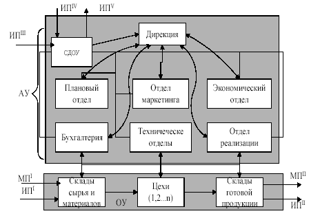 Рис. 3. Схема структуры аппарата управления Дирекция, является подразделением, работники которого отвечают за общие вопросы организации работы системы, за принятие управленческих решений (как стратегических, так и тактических) по всем видам деятельности, за выполнение текущих административно - управленческих функций, осуществление связи с внешней средой. Все остальные подразделения предназначены для подготовки вариантов принимаемых решений, контроля исполнения этих решений и совершенствования процессов управления тем или иным объектом, например, плановый отдел, отдел маркетинга, экономический отдел, отдел материально - технического снабжения, отдел реализации, технический отдел, бухгалтерия, финансовый отдел и др. Каждое из подразделений предприятия отвечает за конкретный вид деятельности, имеет свой объект управления (поставка сырья и материалов, реализация готовой продукции, управление кадрами, финансовыми ресурсами и т. д.), и выполняет все перечисленные общие функции. 3. Назначение СДОУ. Структура, функции и виды.В состав каждого предприятия включается самостоятельное структурное подразделение, основной целью функционирования которого является своевременное обеспечение документами процессов управления и деловых процедур. Таким подразделением является Система Документального Обеспечения Управления (СДОУ), которая предназначена для решения следующих задач: · документирования принимаемых организационных, плановых и · административных управленческих решений; · документационного обеспечения управления (ДОУ); · получения, фильтрации и распределения потоков внешней и внутренней информации руководителям и исполнителям подразделений, в соответствии с их полномочиями; · контроля их исполнения, анализа качества и сроков исполнения; · организации хранения, поиска документов и выдачи документов, необходимых для выполнения функций управления или деловых процессов и процедур. Документирование представляет собой процедуру создания документов, отражающих факты, события или показатели, получаемые при выполнении функций управления или деловых процессов, т. е. их составление, оформление, согласование и изготовление. Документационное обеспечение управления (ДОУ) осуществляется при выполнении следующих видов деятельности: · делопроизводство, т.е. организация работы с документами; · формирование и хранение архива документов. Делопроизводство - это комплекс процедур по проверке, отбору и обеспечению работников аппарата управления предприятия необходимой документированной информацией для выполнения каких - либо функций управления, деловых процессов и процедур, призванных для решения двух основных задач, главной из которых является документационное обеспечение управления. Кроме того, с помощью процедур делопроизводства СДОУ выполняет функцию информационного фильтра между экономической системой и внешней средой путем осуществления операций получения, проверки, сортировки, распределения потоков документов и передачи документов конкретным адресатам. Отсюда вытекает вывод о том, что всем предприятиям и организациям необходимо совершенствовать документационное обеспечение управления, поскольку оно оказывает непосредственное влияние на качество принятия и исполнения управленческих решений. Особеннос