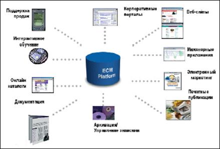 Однако, содержание далеко не всегда представлено в удобном структурированном формате. Чтобы убедиться в этом, достаточно взглянуть на экран компьютера типичного служащего вашей компании — вы увидите там потрясающее разнообразие видов неструктурированного содержания: документы, подготовленные в MS Word, брошюры в формате PDF, картинки в JPG, аудиозаписи, видеоклипы, вебстраницы в формате XML и HTML и так далее и тому подобное в зависимости от того, чем именно занимается ваше предприятие и конкретный сотрудник. Увы, это не электронные таблицы, с которыми мы все научились так легко обращаться, однако, оказывается, что и это море файлов различных форматов содержит жизненно необходимую для успеха вашего бизнеса информацию, причем содержит в гораздо большей степени, чем те данные, которые можно привести к структурированному виду. Многочисленными исследованиями установлено, что более 80% содержания, необходимого для функционирования предприятия, является именно неструктурированным, но всего лишь 10% предприятий используют те или иные системы для управления этим содержанием. Documentum 5 — корпоративная платформа, предоставляющая единообразные средства для работы с содержанием любого типа — документами, веб-страницами, графическими изображениями, чертежами, видеофайлами и т.п. Управление содержанием в масштабе предприятия (Enterprise Content Management) позволяет обеспечить всех сотрудников возможностью создания, управления, персонализированного представления и распространения содержания непосредственно в ходе выполнения ими своих обычных служебных обязанностей.