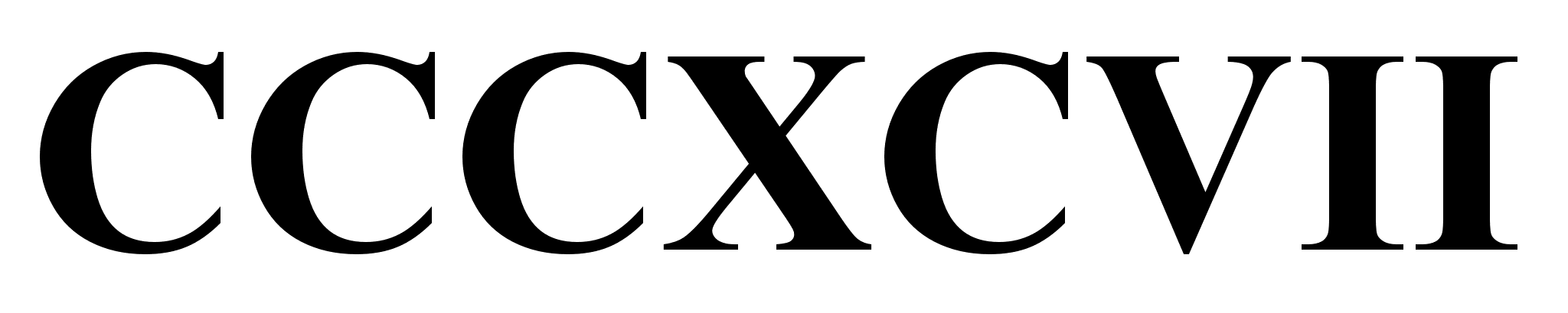 В римской нумерации явственно сказываются следы пятиричной системы счисления. В языке же римлян (латинском) никаких следов пятиричной системы нет. Значит, эти цифры были заимствованы римлянами у другого народа (предположительно у этрусков). Все целые числа (до 5000) записываются с помощью повторения вышеприведенных цифр. При этом, если большая цифра стоит перед меньшей, то они складываются, если же меньшая стоит перед большей (в этом случае она не может повторяться), то меньшая вычитается из большей. Подряд одна и та же цифра ставится не более трех раз. Рассмотрим примеры. Пример 1.4 Запись чисел римскими цифрами