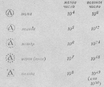 1.1 Границы счета На ранних ступенях развития общества люди почти не умели считать. Они отличали друг от друга совокупности двух и трех предметов; всякая совокупность, содержавшая большее число предметов, объединялась в понятии «много». Это был еще не счет, а лишь его зародыш. Впоследствии способность различать друг от друга небольшие совокупности развивалась; возникли слова для обозначений понятий «четыре», «пять», «шесть», «семь». Последнее слово длительное время обозначало также неопределенно большое количество. Наши пословицы сохранили память об этой эпохе («семь раз отмерь – один раз отрежь», «у семи нянек дитя без глазу», «семь бед – один ответ» и т.д.). С усложнением хозяйственной деятельности людей понадобилось вести счет в более обширных пределах. Для этого человек пользовался окружавшими его предметами, как инструментами счета: он делал зарубки на палках и на деревьях, завязывал узлы на веревках, складывал камешки в кучки и т.п. Такой вид счета носит название унарной системы счисления, т.е. система счисления, в которой для записи числа применяется только один вид знаков. Это удобно, так как сразу визуально определяется количество знаков и сопоставляется с количеством предметов, которые эти знаки обозначают. Все мы ходили в первый класс и считали там на счетных палочках – это отзвук той далекой эпохи. Кстати, от счета с помощью камешков ведут свое начало различные усовершенствованные инструменты, как, например, русские счеты, китайские счеты («сван-пан»), древнеегипетский «абак» (доска, разделенная на полосы, куда клались жетоны). Аналогичные инструменты существовали у многих народов. Более того, в латинском языке понятие «счет» выражается словом «calculatio» (отсюда наше слово «калькуляция»); а происходит оно от слова «calculus», означающего «камешек». Особо важную роль играл природный инструмент человека – его пальцы. Этот инструмент не мог длительно хранить результат счета, но зато всегда был «под рукой» и отличался большой подвижностью. Язык первобытного человека был беден; жесты возмещали недостаток слов, и числа, для которых еще не было названий, «показывались» на пальцах. Поэтому, вполне естественно, что вновь возникавшие названия «больших» чисел часто строились на основе числа 10 – по количеству пальцев на руках; у некоторых народов возникали также названия чисел на основе числа 5 – по количеству пальцев на одной руке или на основе числа 20 – по количеству пальцев на руках и ногах. На первых порах расширение запаса чисел происходило медленно. Сначала люди овладели счетом в пределах нескольких десятков и лишь позднее дошли до сотни. У многих народов число 40 долгое время было пределом счета и названием неопределенно большого количества. В русском языке слово «сороконожка» имеет смысл «многоножка»; выражение «сорок сороков» означало в старину число, превосходящее всякое воображение. На следующей ступени счет достигает нового предела: десяти десятков, и создается название для числа 100. Вместе с тем слово «сто» приобретает смысл неопределенно большого числа. Такой же смысл приобретают потом последовательно числа тысяча, десять тысяч (в старину это число называлось «тьма»), миллион. На современном этапе границы счета определены термином «бесконечность», который не обозначает какое либо конкретное число. 1.2 Десятич