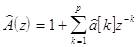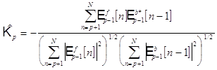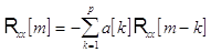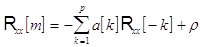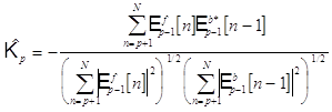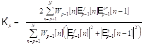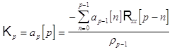 автокорреляционная последовательность для Наиболее очевидным подходом к авторегрессионному оцениванию является решение нормальных уравнений Юла-Уалкера, в которые вместо значений неизвестной автокорреляционной функции подставляем их оценки. Результаты экспериментов с этим, первым методом АР-оценивания и сравнение с другими методами этого класса приведены в соответствующем разделе. 1.4.3. Методы оценивания коэффициентов отражения. Рекурсивное решение уравнений Юла-Уалкера методом Левинсона связывает АР-параметры порядка p c параметрами порядка p-1 выражением :