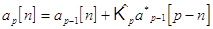 определяются вектора Процедура, используемая для обновления порядка вектора линейного предсказания вперед выглядит следующим образом :