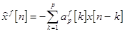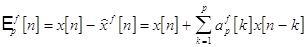 Выражение для обновления временного индекса у квадрата ошибки линейного предсказания вперед :