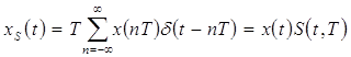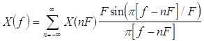 есть свертка Для того чтобы восстановить исходный временной сигнал по его отсчетам, то есть осуществить интерполяцию некоторого континуума значений между этими отсчетами, можно пропустить дискретизованные данные через идеальный фильтр нижних частот, обладающий прямоугольной частотной характеристикой (взвешивание в частотной области ), используя теоремы о свертке во временной и частотной областях, получим :