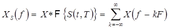 Докажем, что его можно представить в виде свертки истинного спектра (спектральной плотности мощности) и нормированного квадрата модуля дискретно-временного преобразования используемого окна данных, то есть как Рассмотрим