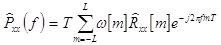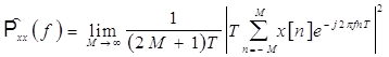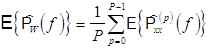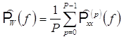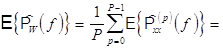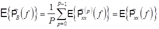 Далее на каждой частоте, представляющей интерес, P отдельных немодифицированных периодограмм усредняются, с тем чтобы получить окончательную оценку: Математическое ожидание и дисперсия даются следующими выражениями:
