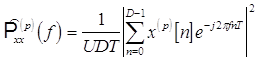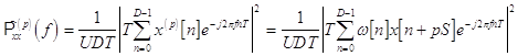 неперекрывающихся сегментов по D отсчетов в каждом, так что DP<N (называемым периодограмма Бартлетта). Тогда p-ый