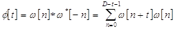 Введем в рассмотрение следующее окно данных (свертка используемого окна данных с тем же комплексно сопряженным, но в обратном времени, окном):