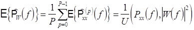 Подставив в формулу для математического ожидания периодограммы Уэлча, получим следующее выражение: