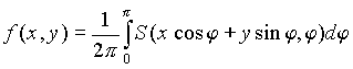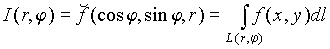 называется функция, Обычно для восстановления функции двух переменных по ее интегралам вдоль прямых используется метод свертки и обратного проецирования. В этом методе формула обращения преобразования Радона записывается без явного использования обобщенных функций. Однако наиболее общий и естественный вид формулы обращения преобразования Радона приобретают при использовании аппарата обобщенных функций. Далее будет рассмотрено соотношение между методом обобщенных функций и методом свертки и обратного проецирования. Перед изложением собственно численного алгоритма будет дан вывод формулы обращения, позволяющий естественным образом перейти к построению алгоритма. В силу равенства