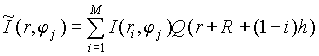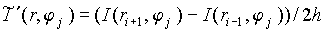 позволяющая выразить искомую функцию через наблюдаемые данные. Прежде чем перейти к дискретному варианту сделаем ряд замечаний, связанных с обоснованием корректности рассматриваемых алгоритмов в реальных ситуациях. Обобщенные функции являются функционалами над пространством бесконечно дифференцируемых быстро убывающих функций. Однако при построении аппроксимаций исходных реальных данных по отсчетам, заданным в дискретных точках, желательно иметь менее жесткие требования к гладкости аппроксимирующих функций. Свертка с обобщенными функциями, в частности, с функцией 1/z2, может быть определена для значительно менее гладких функций, это очень важно при доказательстве корректности применения численных алгоритмов, получаемых с помощью аппарата обобщенных функций, к реальным данным. Перейдем к дискретному варианту. Будем предполагать, что f(x, y) = 0 вне круга радиуса R с центром в нуле. Исходными данными являются величины I(ri, φi), здесь ri v отсчеты в интервале [-R, R], 1 ≤ i ≤ M - отсчеты в интервал [0, π], 1 ≤ j ≤ N. Если теперь при заданных значениях функции I(r, φ) β отсчетах (ri, φi) построить аппроксимацию I(r, φ) так, что для S(z,φ) βыполняется равенство (1.5.1), то используя (1.5.1) и (1.5.2) можно получить приближение к f(x, y). В дальнейшем будем предполагать, что отсчеты на осях r и φ являются равноотстоящими. При каждом фиксированном φj определим 1.