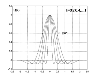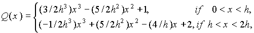 Q(x) = Q(-x), Q(x) = 0 при |x|> 2h, h=ri+1-ri. Функция Q(x) имеет разрывы второй производной, но модуль второй