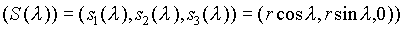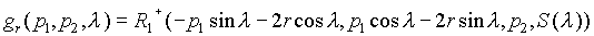 При t = 0 луч проходит через точку S = (rcosl , rsinl , 0), при t = 1 v через точку P = (p1, p2) = (-p1 sin l - rcosl , p1 cosl - r sinl , p2). Итак, мы имеем