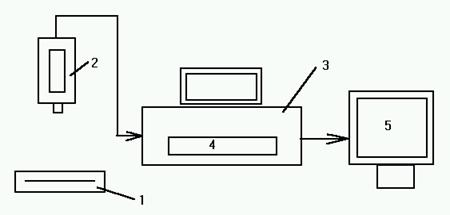 Рис.4 Блок-схема технических средств АРМ ВР. 1-негатоскоп; 2-телевизионная камера; 3-ПЭВМ; 4-фрейм-граббер; 5-телемонитор. Практическая работа показала, что производительность персонального компьютера во многих случаях достаточна, чтобы решать задачи обработки видеоданных в реальном времени врача. Кроме того ПЭВМ имеют мощные технические и программные средства для организации «оконного» человеко-машинного диалога. При использовании изображений, записанных в аналоговом виде, например рентгенограмм, необходимо устройство для ввода и визуализации их в ЭВМ. В качестве такого устройства удобно использовать фрейм-граббер конструктивно оформленный в виде платы, расположенной в корпусе ПЭВМ. Также необходимо иметь телекамеру с объективом, световой стол для подсветки рентгенограмм (негатоскоп) и телемонитор для визуализации изображений (рис.4). Устройство цифрового ввода и визуализации изображений должно обеспечивать высокое качество представления медицинских изображений, чтобы при их использовании не терялась важная диагностическая информация. [№ 7] 3.2. Области применения и преимущества цифровых систем. К преимуществам цифровых рентгенографических систем относятся следующие четыре фактора: цифровое отображение изображения; пониженная доза облучения; цифровая обработка изображений; цифровое хранение и улучшение качества изображений. Рассмотрим первое преимущество, связанное с отображением цифровой информации. Разложение изображения по уровням яркости на экране становится в полной мере доступным для пользователя. Весь диапазон оптических яркостей может быть использован для отображения лишь одного участка изображения, что приводит к повышению контраста в интересующей области. В распоряжении оператора имеются алгоритмы для аналоговой обработки изображения с целью оптимального использования возможностей систем отображения. [№ 5, стр. 103] Это свойство цифровой рентгенографии также дает возможность снизить лучевую нагрузку на пациента путем уменьшения количества рентгенограмм для получения диагностической информации (той же полезности). Цифровое отображение при его компьютерной обработке позволяет извлечь количественную и качественную информацию и таким образом перейти от интуитивно-эмпирического способа изображения к объективно измеренному. Существенным преимуществам цифровой рентгенографии перед экранно-пленочным процессом являются простота и скорость получения изображения. Изображение становится доступным анализу врачом-рентгенологом в момент окончания экспозиции. [№ 6] Второе преимущество цифровой рентгенологии - возможность снижения дозы облучения. Если в обычной рентгенологии доза облучения зависит от чувствительности приемника изображения и динамического диапазона пленки, то в цифровой рентгенологии оба этих показателя могут оказаться несущественными. Снижения дозы можно достичь установкой экспозиции, при которой поддерживается требуемый уровень шума в изображении. Дальнейшее уменьшение дозы возможно путем подбора такой длины волны рентгеновского излучения, которая обеспечивала бы минимальную дозу при данном отношении сигнал/шум, а также путем ликвидации любых потерь контраста с помощью описанных выше методов отображения цифровых изображений. Третье преимущество цифровой рентге