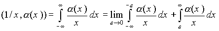 Такое понимание интеграла используется при определении преобразования Гильберта от функции α (x) как свертки с функцией 1/xx. . Преобразование Гильберта используется, в частности, в одной из формул обращения преобразования Радона в двумерном пространстве. Эта формула обычно приводится в руководствах по компьютерной рентгеновской томографии. Однако метод свертки и обратного проецирования, часто используемый при построении численных алгоритмов томографической реконструкции, основан на несколько другом виде формулы обращения преобразования Радона. В этом методе по существу используется свертка проекционных данных последовательностью функций сходящихся к 1/xx2 в смысле обобщенных функций. Линейный функционал, соответствующий функции 1/xx2, или, что то же самое, обобщенная функция 1/xx2 определяется формулой [19]