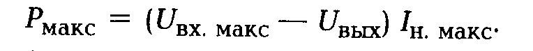 Если ток базы регулирующего транзистора VT1 велик, в стабилизатор вводят дополнительный усилитель постоянного тока. Одна из схем такого стабилизатора приведена на рис. 1.3. Напряжение, подаваемое с движка потенциометра R3 на базу транзистора VT2, на котором выполнен дополнительный усилитель постоянного тока, называется напряжением обратной связи (UOC). Из рисунка видно, что UOC=UCТ+ UЭБ. Ток, протекающий через потенциометр R3, не должен превышать 10...15 мА. Сопротивление резистора R1 обычно составляет несколько килоом. Коэффициент стабилизации стабилизатора около 100, а выходное сопротивление составляет десятые доли ома. Расчет компенсационного стабилизатора напряжения начинают с выбора регулирующего транзистора VT1. Максимально допустимое его напряжение UКЭ.МАКС должно превышать наибольшее напряжение на входе стабилизатора (UВХ.МАКС), а максимально допустимый ток коллектора IK.МАКС - быть больше предельного значения тока нагрузки. Максимальная мощность, рассеиваемая транзистором VT1, определяется по формуле: