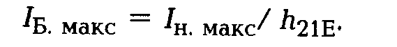 Значение этой мощности должно составлять не более 75% от максимально допустимой мощности РК.МАКС” приводимой в справочнике. Если это условие невыполнимо, необходимо выбрать другой транзистор — с большим значением РК.МАКС. Определив по справочнику для выбранного транзистора VT1 минимальное значение статического коэффициента передачи тока базы h21E, рассчитывают максимальный ток базы, соответствующий максимальному току нагрузки: