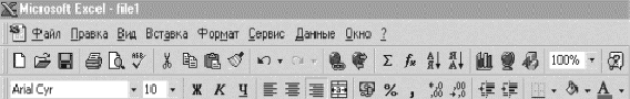 Вид рабочего окна программы изображен ниже, на рис. 1 Управление файламиС помощью программы Excel 97 можно создавать самые различные документы. Рабочие листы (Sheets) можно использовать для составления таблиц, вычисления статистических оценок, управления базой данных и составления диаграмм. Для каждого из этих приложений программа Excel 97 может создать отдельный документ, который сохраняется на диске в виде файла. Файл может содержать несколько взаимосвязанных рабочих листов, образующих единый многомерный документ (блокнот, рабочую папку). С помощью многомерных документов пользователь получает прямой доступ одновременно к нескольким таблицам и диаграммам что повышает эффективность их обработки. Для создания нового документа из меню Файл нужно вызвать команду Создать.