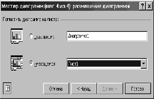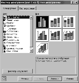 Рис.11. Пиктограмма Конструктора диаграмм на панели инструментов Excel 97 Построение диаграмм. Прежде чем строить диаграмму, необходимо закончить все работы в таблице, включая ее форматирование. Вызовите Конструктор диаграмм (см. рис.11). Вы должны сделать с помощью указателя мыши прямоугольник на свободном месте рабочего листа, где будет размещена диаграмма. После этого Конструктор открывает диалоговое окно, в котором за четыре шага нужно построить диаграмму. Работа с Конструктором настолько интуитивно понятна, что не требует каких – либо пояснений.