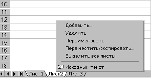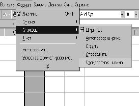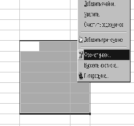 Рис.3. Контекстное меню содержит весь список допустимых для объекта действий Коррекция высоты строк и ширины столбцов. Прежде всего, корректируемая строка или столбец таблицы должны быть промаркированы. Для этого необходимо щелкнуть левой кнопкой мыши по номеру (координате) строки или столбца. В меню Формат находятся подменю Строка и Столбец. При выборе одного из этих подменю открывается меню следующего уровня. В подменю Столбец вызовите директиву Ширина, тогда откроется диалоговое окно, в котором пользователь может указать ширину столбца. В качестве единицы измерения можно использовать один символ. Команда Автоподбор ширины из меню Столбец автоматически корректирует ширину столбца в соответствии с его содержимым. Коррекцию можно выполнить и с помощью манипулятора мыши. Для этого указатель мыши нужно установить на границу между номерами строк или адресами столбцов.