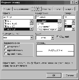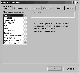 Рис.5. Задание формата ячеек при использовании контекстного меню Выравнивание данных. Для выравнивания содержимого ячеек прежде всего надо промаркировать выравниваемые ячейки. Далее следует вызвать диалог, изображенный на рис.5 и в верхнем поле этого окна выбрать закладку Выравнивание.
