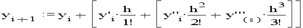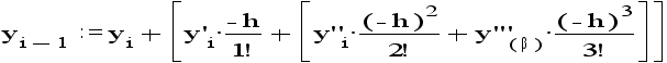 С помощью этой разности можно приближенно вычислить значение первой производной у` в i-й точке. Разложим функцию y(x) в степенной ряд. приняв за центр разложения точку xi и ограничившись четырьмя членами: