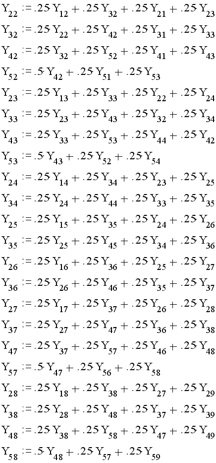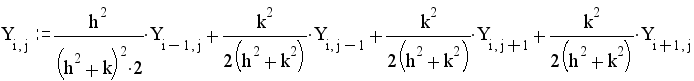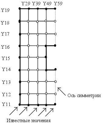 Неизвестные значения в узлах матрицы находящихся на оси симметрии высчитываются по формуле:
