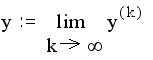 МЕТОД ЗЕЙДЕЛЯ. Метод Зейделя относится к числу итерационных методов, в которых принципиально отсутствует фактор накопления погрешностей. Поэтому он широко применяется для решения больших систем уравнений. Будем рассматривать корни решаемой системы как компоненты некоторого вектора у . Основная идея всех итерационных методов заключается в том, что берется приближенное значение вектора у и по формулам, составленным на основании решаемых уравнений, вычисляется новое приближенное значение вектора у . Назовем эти приближенные значения y(k) и y(k+1) соответственно. Поскольку исходное приближение выбиралось произвольно, то у(k+1)в свою очередь может послужить исходным для получения по тем же формулам нового приближения y(k+2) . Очевидно, этот процесс можно продолжать сколь угодно долго. Говорят, что процесс итераций сходится, если получаемая при этом последовательность векторов у(k) (к=0,1,2,...} имеет своим пределом вектор y,являющийся точным решением системы: