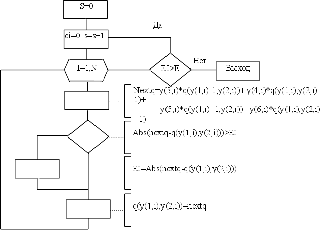 то процесс Зейделя для соответствующей приведенной системы сходится к её единственному решению при любом выборе начального вектсра y(ср) Такие системы называют системами с диагональным преобладанием. Метод Зейдедя имеет свойство, позволяющее обеспечить сходимость процесса для любых систем уравнений с неособенной матрицей коэфициентов. Если обе части систем с неособенной матрицей коэфициентов А=[aij] умножить слева на транспонировнную матриц A*[aij] , то будет получена новая, равносильная исходной система, которая называется нормальной. Процесс Зейделя для приведенной системы, полученной из нормальной, всегда сходится независимо от выбора нача льного приближения. Блок схема.