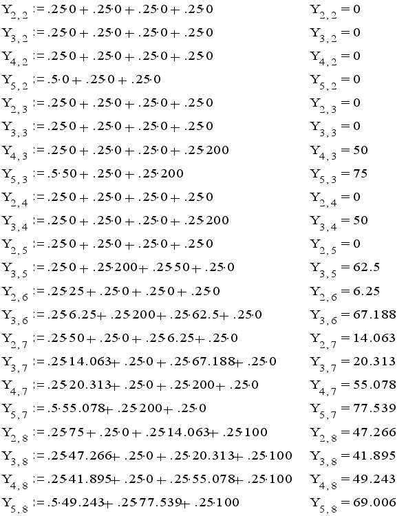 Неизвестные значения в узлах матрицы находящихся внутри фигуры высчитываются по формуле: