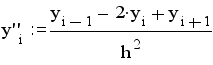 Таким образом,вторая производная y`` с ошибкой порядка h*h может быть приближонно заменена конечно-разностным отношением: