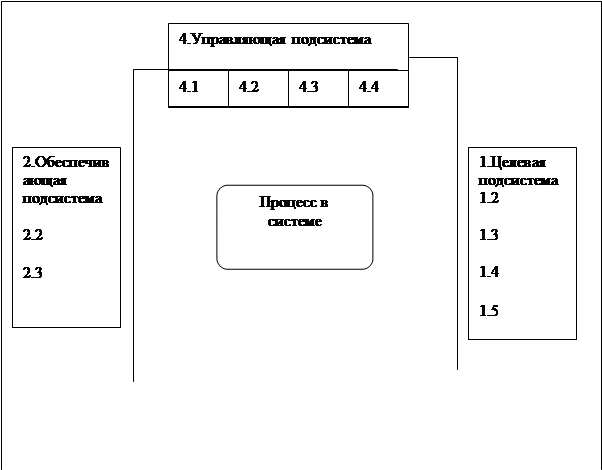 Рис. 1.7. агрегативно-декомпозиционное представление объекта прогнозирования Условные обозначения: 1.1 - повышение качества продукции; 1.2 - ресурсосбережение на всех стадиях технологической цепочки; 1.3 - расширение рынка сбыта; 1.4 - организационно-техническое развитие производства (в т.ч. внедрение инноваций); 1.5 - социальное развитие коллектива и охрана окружающей среды; 2.1 - ресурсное обеспечение (сырье, материалы, ввод мощностей); 2.2 - информационное обеспечение; 2.3 - правовое обеспечение; 3.1 - организация процессов основного и вспомогательного производства; 3.2 — мотивация; 3.3 - регулирование; 3.4 - маркетинг; 3.5 - планирование; 3.6 - учет и контроль по центрам ответственности; 4.1 - управление персоналом; 4.2 - разработка и реализация управленческих решений; 4.3 - анализ в принятии решений; 4.4 - прогнозирование в принятии решений. Описание исходного состояния (анализ) исследуемой системы отражает степень информированности к началу прогнозирования и содержит исходную гипотезу о механизме ее функционирования и развития. Таким образом, на подготовительном этапе создаётся информационная (в широком смысле) база для проведения прогнозных исследований. Процесс прогнозирования может быть представлен как некоторое операторное преобразование(П) исходной информации об исследуемом объекте в виде её отображения на будущее, ограниченное глубинной прогноза: П : {I, tyn} →Iyn, (1.2) где П – оператор прогнозирования; I – информация об исходном состоянии объекта; tyn – период упреждения прогноза; Iyn – результат прогноза. Зависимость (1.2) для сложных хозяйственных систем может быть представлена в более детальном виде: П : {I, Ц, U, tyn}→Iyn, (1.3) при условии, что Ц ≤ Ц٭; U ٭≤ U ≤ U´٭; tyn ≤ tyn ; I٭ ≤ I ≤ I´٭, (1.4) Где Ц – область целей системы в пространстве; U – уровень управления в принятой декомпозиции системы; Ц٭, U٭, U´٭, I٭, I´٭ tyn – горизонт прогноза, т.е. максимально возможный период упреждения. Для хозяйственных многоуровневых систем оператор прогнозирования П представляет собой иерархическую структуру. Например, для трёхуровневой системы П={Псk,{Пβjk},{Пαijk}}, (1.5) где Псk – оператор прогнозирования высшего уровня; {Пβjk} – множество операторов прогнозирования второго уровня; {Пαijk} – множество операторов прогнозирования третьего уровня; i,j,k – число параметров, описывающих систему на каждом уровне. Таким образом, описание рассматриваемой трехуровневой системы реализуется в виде иерархии численных параметров системы и ограничений на области их области их возможных значений. В рассматриваемой формальной постановке исходная информация о состоянии рассматриваемого объекта (I) отделена от механизма его функционирования (П). Структура этой информации может быть представлена тремя основными составляющими: Iу - параметры состояния системы, поддающиеся целенаправленному изменению; Iну - параметры, эволюция которых не поддается управлению, т.е. не зависит от воли людей; Iвн - параметры внешней среды, не поддающиеся изменению в рамках рассматриваемой системы. В результате получаем