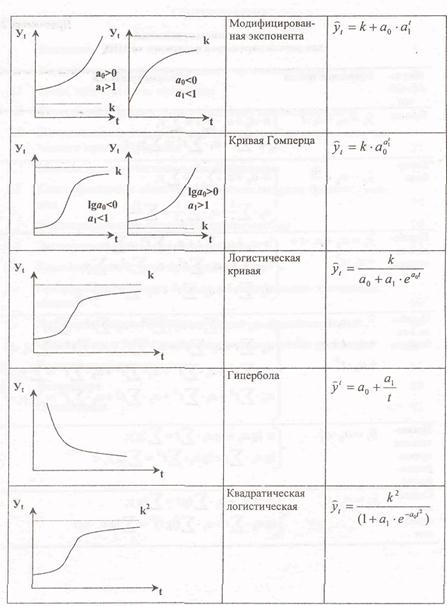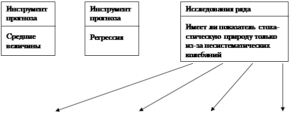 Рис.2.2.Схема выбора статистического метода прогнозирования Выбор конкретного параметрического метода прогнозирования, кроме того, зависит от характера исходной статистической базы. В качестве исходных данных могут быть взяты выборочные наблюдения и динамические ряды. В первом случае в качестве инструмента прогноза применяется регрессия. Значительно чаще, чем случайная выборка, информационной базой для прогноза являются динамические ряды. Тогда в качестве инструментов прогноза выступают тренды, авторегрессия, смешанная авторегрессия и т.п. Выбор адекватного подхода зависит от того, обнаружены ли экзогенные факторы, влияющие на значение зависимой переменной или нет, влияют ли на зависимую переменную предшествующие значения этой же переменной и т.д. В целом процесс выбора конкретного метода статистического параметрического прогнозирования показан на рис. 2.2. [39]. Методы экстраполяции сводятся к обработке имеющихся данных об объекте прогнозирования за прошлое время и распространению обнаруженной в прошлом тенденции на будущее. Методы моделирования — наиболее сложный метод прогнозирования, состоящий из разнообразных подходов к прогнозированию сложных систем, процессов и явлений. Эти методы могут пересекаться и с экспертными методами. Экстраполяция трендов Наиболее распространенными из группы математических методов являются методы прогнозной экстраполяции. Временной ряд при экстраполяции представляется в виде суммы детерминированной (неслучайной) составляющей, называемой трендом, и стохастической (случайной) составляющей, отражающей случайные колебания или шумы процесса. Прогнозную экстраполяцию можно разбить на два этапа. • Выбор оптимального вида функции, описывающей ретроспективный ряд данных. Выбору математической функции для описания тренда предшествует преобразование исходных данных с использованием сглаживания и аналитического выравнивания динамического ряда. • Расчет коэффициентов (параметров) функции, выбранной для экстраполяции. Для оценки коэффициентов чаще остальных используется метод наименьших квадратов (МНК). Сущность МНК состоит в отыскании коэффициентов модели тренда, минимизирующих ее отклонение от исходного временного ряда: S = ∑(yt - ŷ)2 → min, (2.3) где ŷ, - расчетные (теоретические) значения тренда; у — фактические значения ретроспективного ряда; n — число наблюдений. Подбор модели в каждом конкретном случае осуществляется по целому статистически ряду критериев (дисперсии, корреляционному отношению и др.). Кроме того, для выбора зависимости ŷt=f(t) существует несколько подходов. Это метод последовательных разностей, метод характеристик прироста, визуальный (глазомерный) выбор формы. Расчет оценок прироста показателя, дополненный визуальным выбором взаимосвязи, уменьшает риск неправильного выбора модели для прогнозирования. В частности, могут быть рекомендованы следующие аппроксимирующие зависимости: ∆ Y / ∆ t = const → ŷt =a0 + a1 t, (2.4) ∆ ln y / ∆ t = const → ŷt = a0 ta, (2.5) ∆ ln y / ∆ ln t = const → ŷt = a0 tt1, (2.6) ∆ Y2 / ∆ X2 = const → ŷt = a0 + a1 t + a2 t2, (2.7) ∆ (t / y) / ∆ t = const → ŷt = t / (a0 + a1 t). (2.8) В Приложении 1 показаны графические зависимости, позволяющие осуществлять визуальный выбор формы зависимости прогнозируемого показателя от фактора времени, а в Приложении 2 - системы нормальных уравнений, применяемые для оценки парам