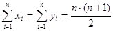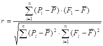 Если несколько элементов из Pi или Ft имеют одинаковые ранги, то им определяется ранг, равный среднему арифметическому значений мест элементов в данной ранжировке. В этом случае последнее соотношение останется верным. Вычисляются корректирующие множители для связей соответственно для последовательностей xi и уi :
