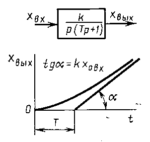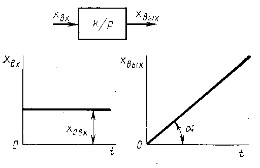 * Звено с придаточной функцией можно представить в виде последовательно соединённых усилительного звена с передаточной функцией W (p) = k и собственно интегрирующего звена. Однако т.к. усилительное звено изменяет только масштаб выходной величины, то для уменьшения числа звеньев при представлении АСР элементарными динамическими звеньями звено с передаточной функцией принимается за элементарное.