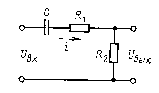 Рисунок 13. Схема реального дифференцирующего звена. Пример. Определим динамические свойства RC-цепи, представленной на рис.13, для которой uВЫХ = (1 / C) i dt + i R1 + uВЫХ; uВЫХ = i R2. (23) Преобразуя эти уравнения по Лапласу, получаем R2 C p UВХ (p) = [1 + C (R1 + R2) p] UВЫХ (p) (24) Передаточная функция цепи W (p) = k Т p / (T p + 1) (25) Таким образом, в динамическом отношении RC-цепь (рис.13) является реальным дифференцирующим звеном. Постоянная времени и коэффициент передачи звена k = R2 / (R1 + R2); T = C (R1 + R2) . Изображение выходной величины при скачкообразном изменении входной величины до х0ВХ Типы регулярных регуляторов (PID) ПИД.УУ ОР С
