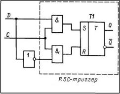 передается на S-вход триггера T1 (S=D), а на входе R устанавливается потенциал