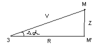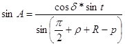 ) і знаючи координату схилення d (AB) обчислити кут e між горизонтом і планетою за виразом:
