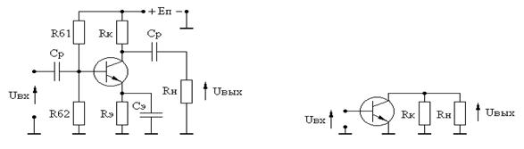Рисунок 4.4- Принципиальная схема некорректированного каскада и эквивалентная схема по переменному току Для расчета искажений в ОВЧ распределим искажения на входной каскад 0,5дБ; При заданном уровне частотных искажений