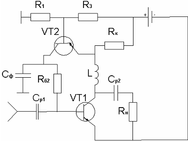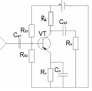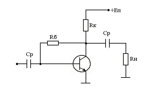 Рисунок 3.4 - Схема пассивной коллекторной термостабилизацииРасчет заключается в выборе URк и дальнейшем расчете элементов схем по формулам: Выберем URк=5В; 1) Еп = URк + Uкэ0=5В+6В=11В, (3 29) где URк - падение напряжения на Rк. 2) Сопротивление коллектора: